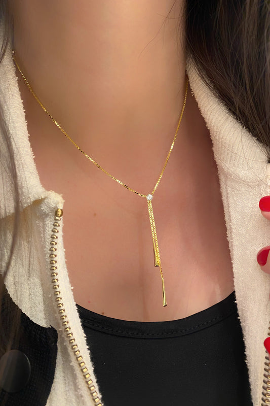 Taşlı Dört Çubuk Gümüş Y Kolye