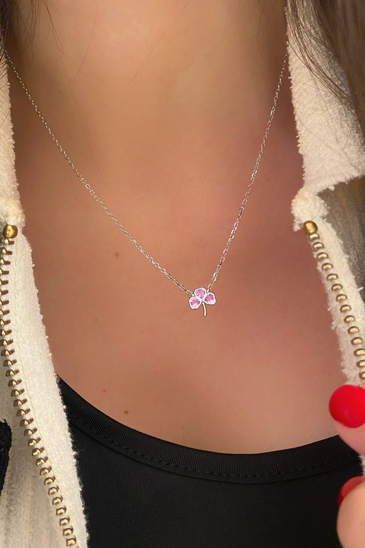 Üç Ruby Kalp Çiçek Gümüş Kolye