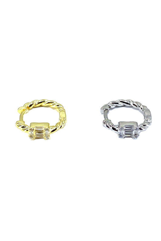 Beyaz Baget Detay Burgu Gümüş Halka Küpe