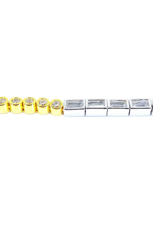 Beyaz Baget Ve Gold Tohum Suyolu Gümüş Bileklik