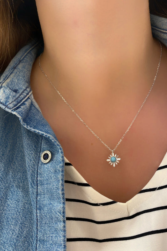 Beyaz Baget Çizgili Turkuaz Güneş Gümüş Kolye