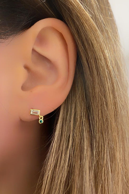 Beyaz Baget Yeşil Top Gümüş Çivili Küpe