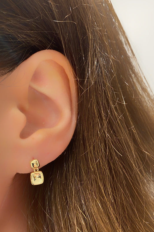 Taşsız İki Kare Sallantılı Gümüş Çivili Küpe