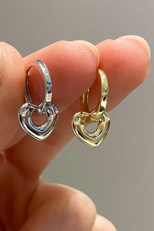 Taşsız İçi Boş Kalp Akışkan Gümüş Çivili Küpe