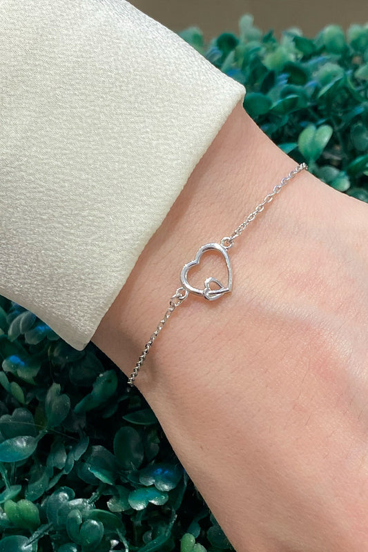 Taşsız İçiçe Kalp Gümüş Bileklik