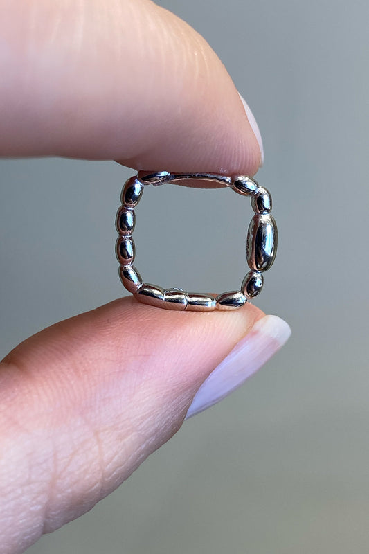 Taşsız İnce Fasulye Desen Kare Gümüş Halka Küpe