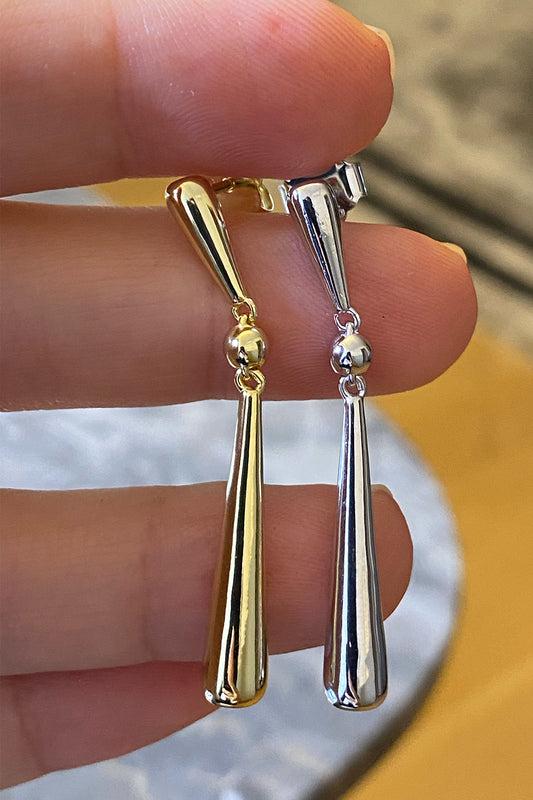 Taşsız İki Uzun Damla Gümüş Çivili Küpe