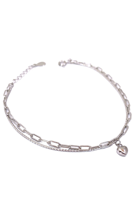 Taşsız Kalp Detay Geo İki Sıra Gümüş Bileklik