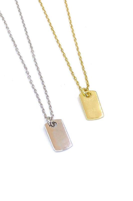 Taşsız Mini Dikdörtgen Plaka Gümüş Kolye