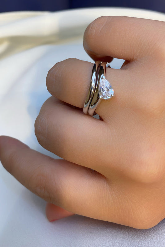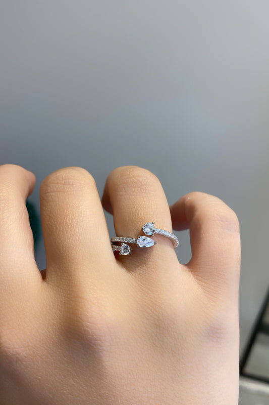 Tek Damla İki Yuvarlak Taş Üç Sıra Gümüş Yüzük