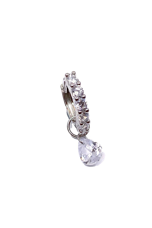 Tek Damla Sallantılı Gümüş Taşlı Halka Küpe
