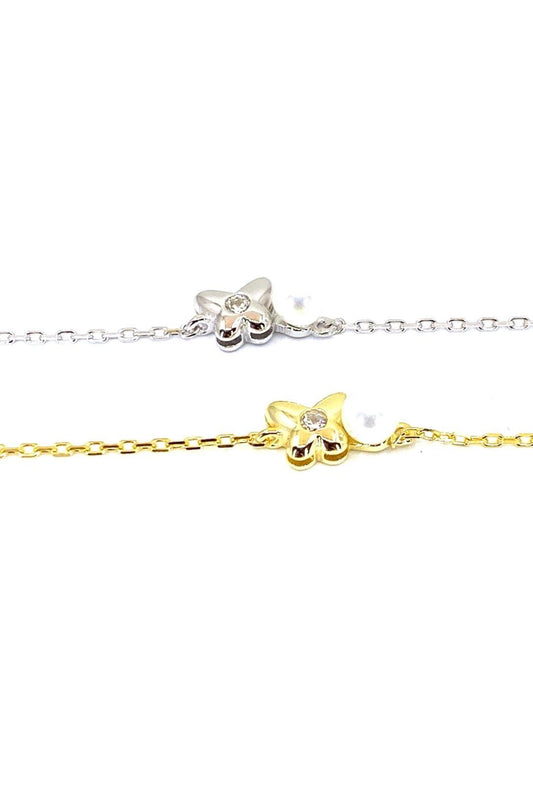 Tek İnci Ve Kelebek Gümüş Bileklik