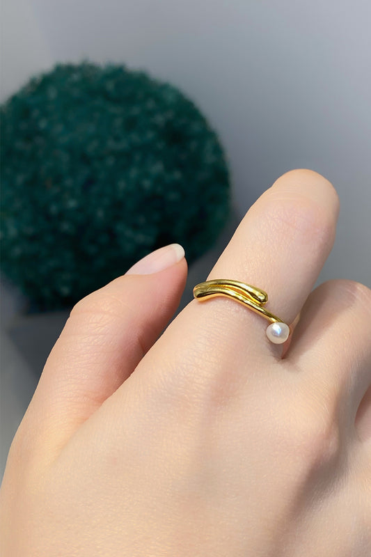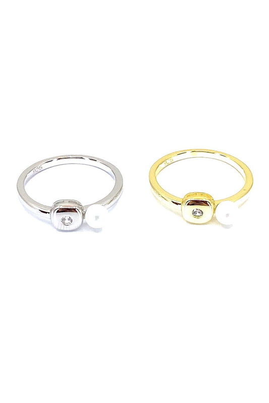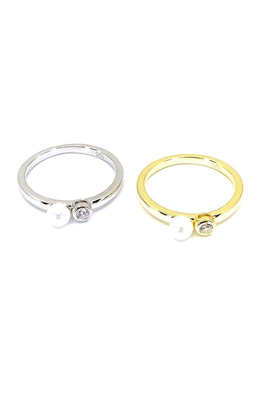Tek İnci Ve Kemik Detay İnce Gümüş Yüzük