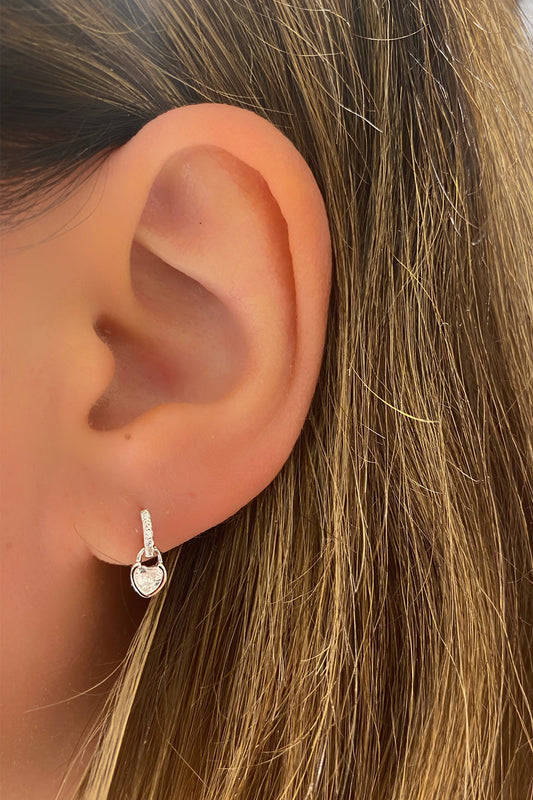 Tek Kalp Sallantılı Mini Çubuk Gümüş Çivili Küpe