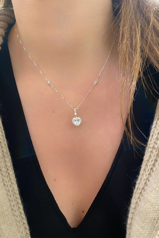 Tek Kalp Ve Çember Sallantılı Gümüş Kolye