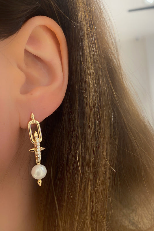 Tek İnci Ve Vida Detay Taşlı Taşsız Geo Gümüş Küpe