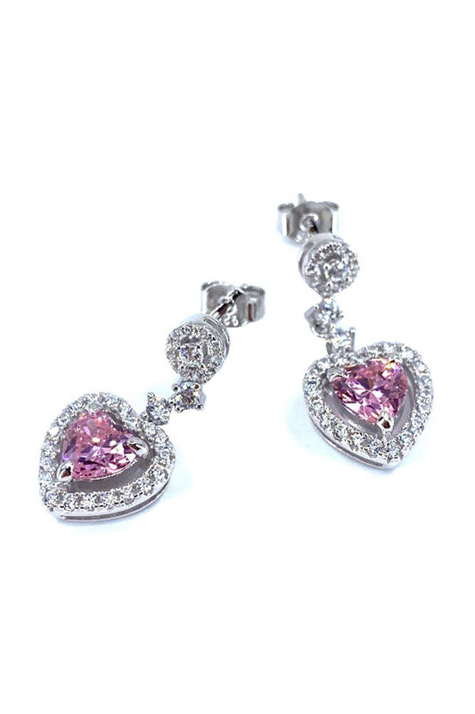 Tektaş Ve Ruby Kalp Montür Gümüş Çivili Küpe