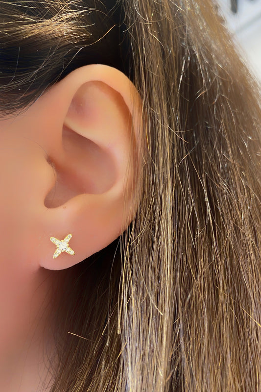 Tektaş Ve Taşlı X Gümüş Çivili Küpe