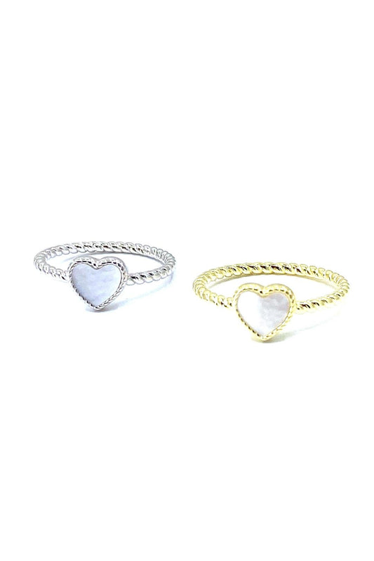 Tırtıklı Çerçeve Sedef Kalp Gümüş Yüzük