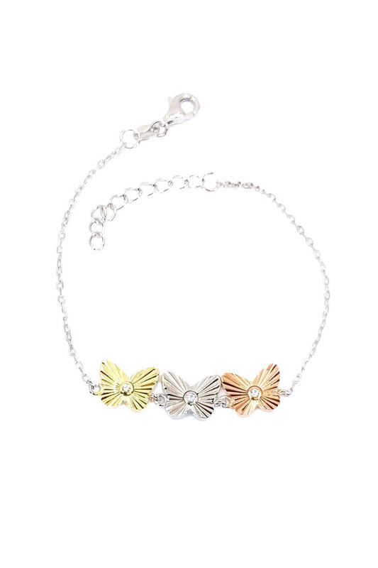 Tırtıklı Mix Üç Kelebek Gümüş Bileklik