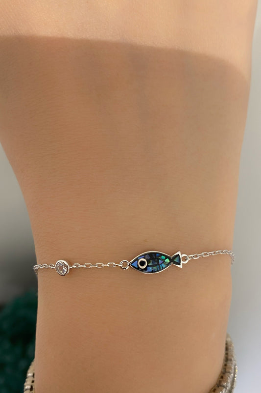 Tohum ve Doğaltaş Balık Gümüş Bileklik