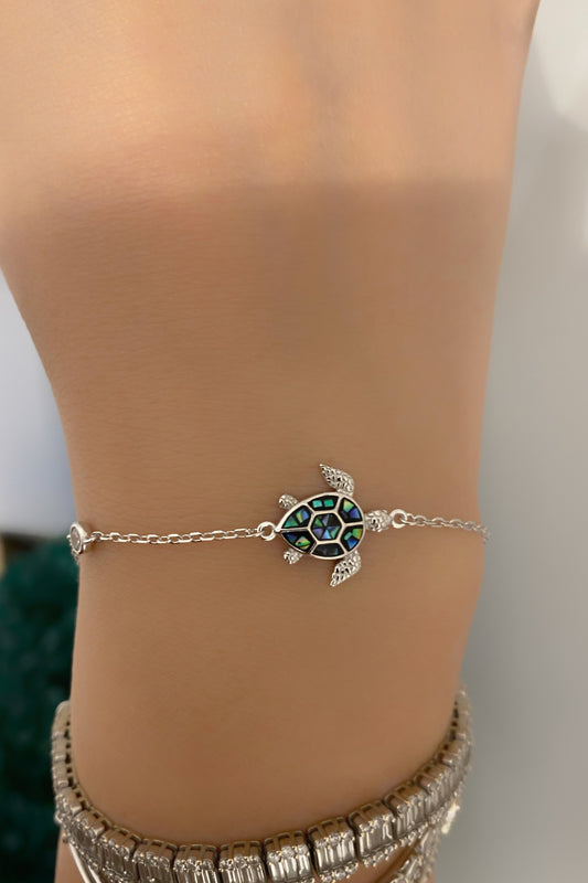 Tohum ve Doğaltaş Kaplumbağa Gümüş Bileklik
