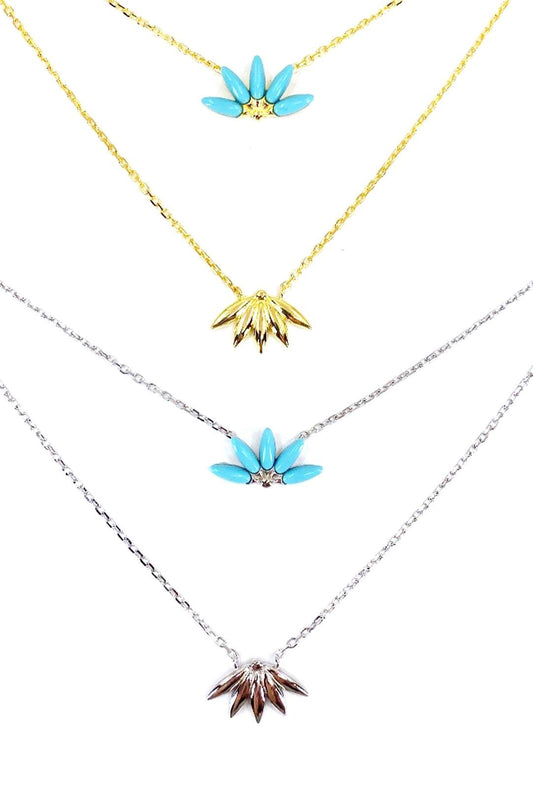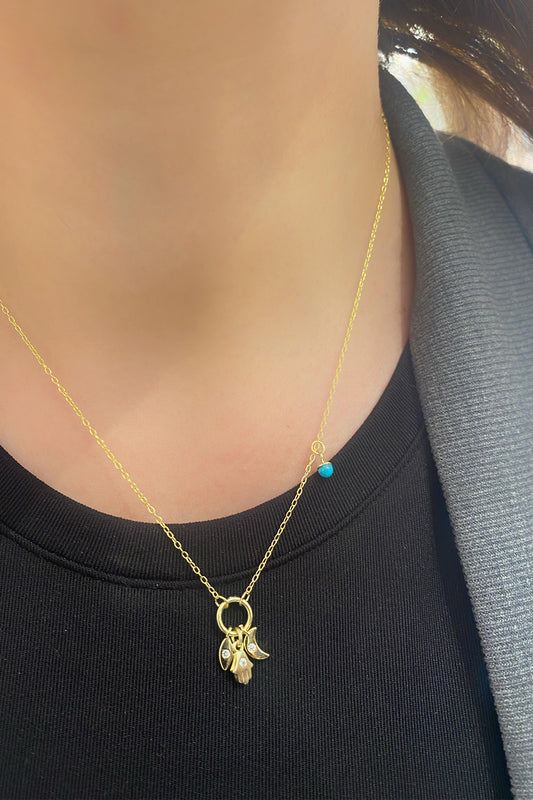 Turkuaz Detay Göz El Ve Ay Gümüş Kolye