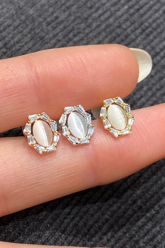 Trapez Çerçeve Oval Ay Taşlı Gümüş Çivili Küpe