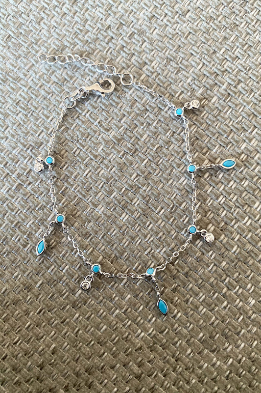 Turkuaz Beyaz Tohum Ve Markiz Sallantılı Gümüş Bileklik
