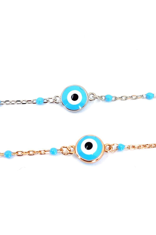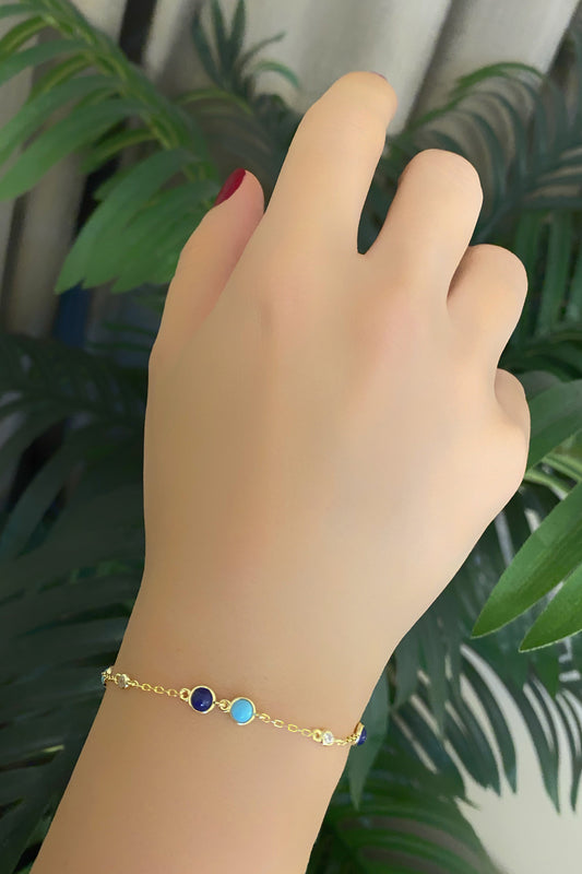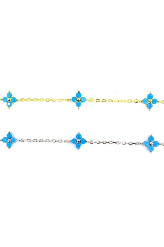 Turkuaz Lacivert Ve Beyaz Tohum Gümüş Bileklik