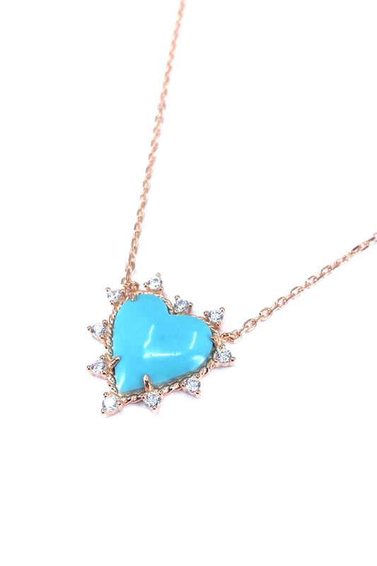 Turkuaz Kalp Taş Detay Gümüş Kolye