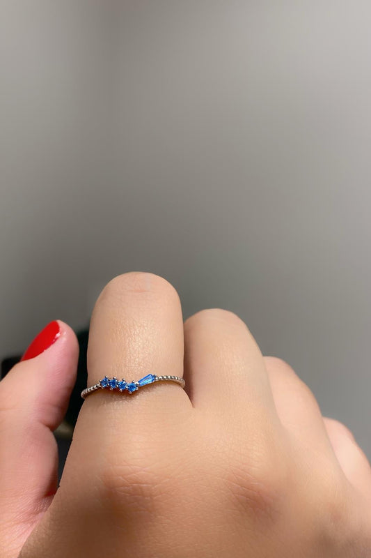 Turkuaz Dört Taş Ve Trapez İnce Gümüş Yüzük
