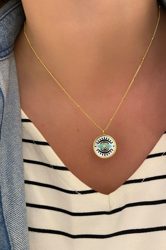 Turkuaz Detay Sedef Göz Yuvarlak Gümüş Kolye