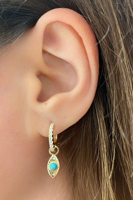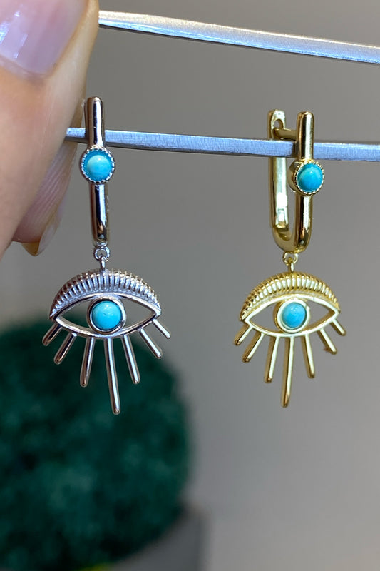 Turkuaz Kirpikli Göz Gümüş Küpe