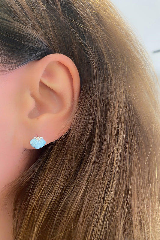 Turkuaz Mineli Denizkabuğu Gümüş Çivili Küpe