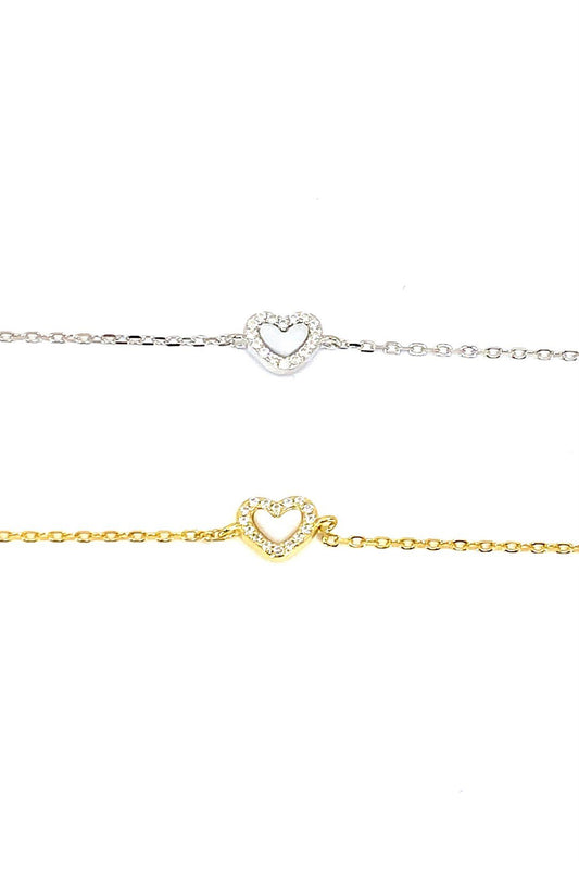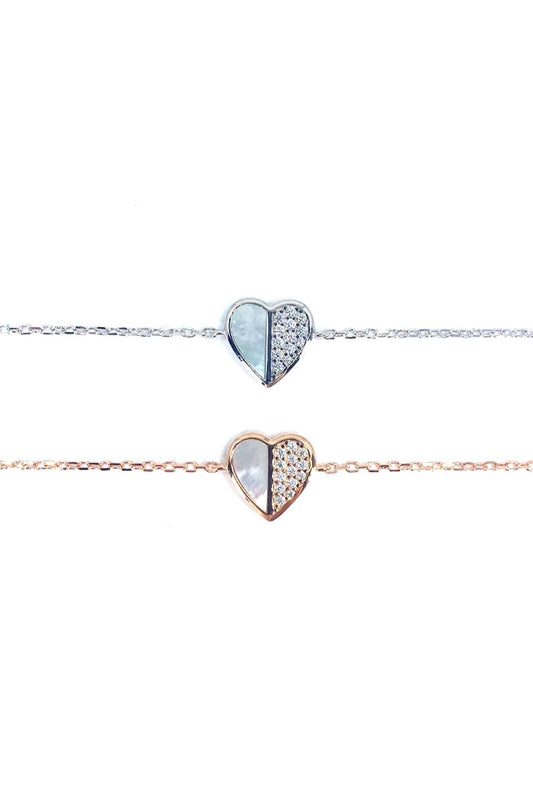 Beyaz Sedef Taşlı Kalp Gümüş Zincir Bileklik