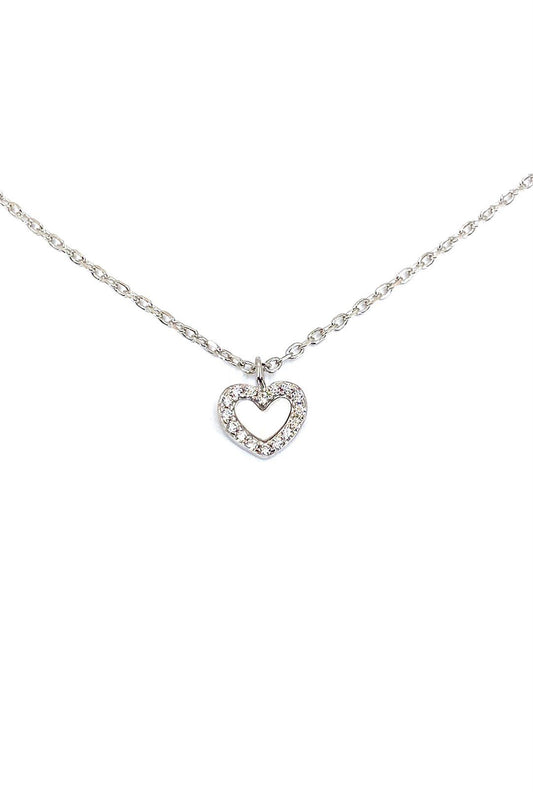 Beyaz Sedef Taşlı Kalp Gümüş Kolye