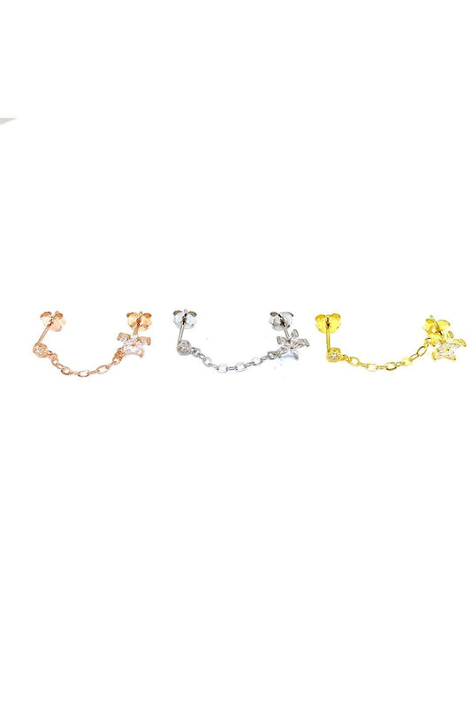 Beyaz Papatya Ve Tohum İkili Gümüş Çivili Küpe