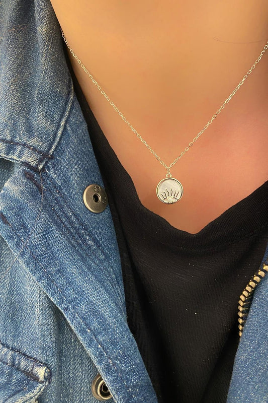 Beyaz Sedef Güneş Göz Gümüş Kolye
