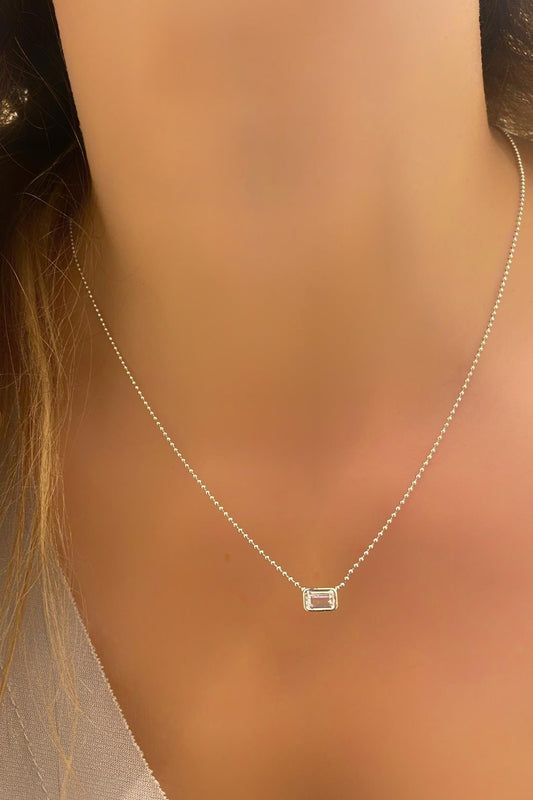 Beyaz Sıvamalı Baget Top Zincir Gümüş Kolye