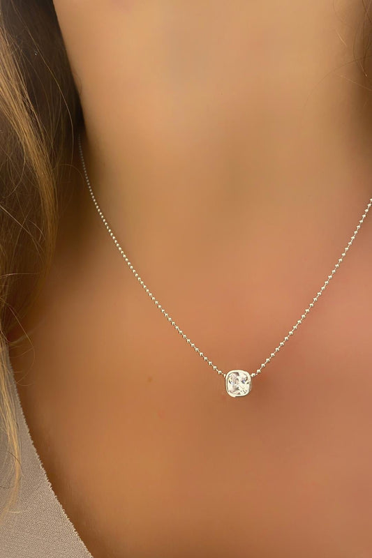 Beyaz Sıvamalı Kare Top Zincir Gümüş Kolye