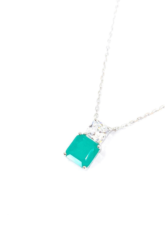 Vip Beyaz Paraiba Kare Gümüş Kolye