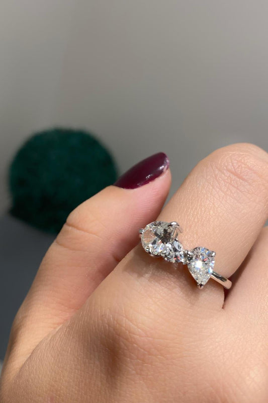 Vip İki Damla Bir Üçgen Gümüş Yüzük