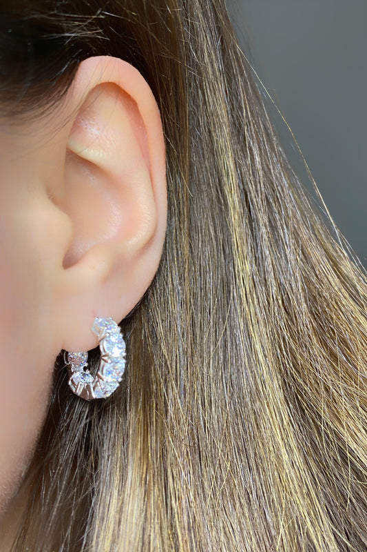 Vip İçi Dışı Taşlı İnce Gümüş Halka Küpe
