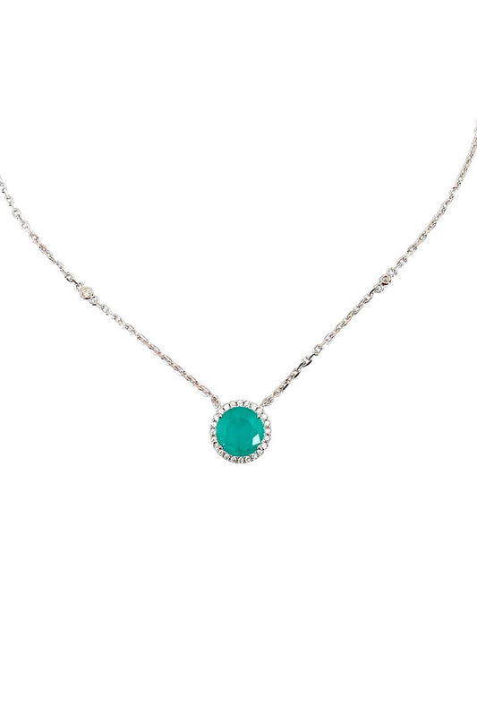 Vip M Paraiba Yuvarlak Çerçeveli Gümüş Kolye