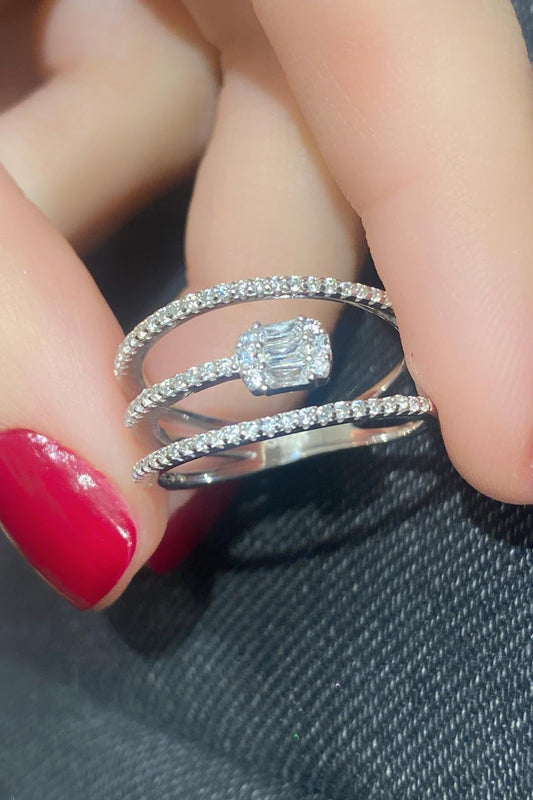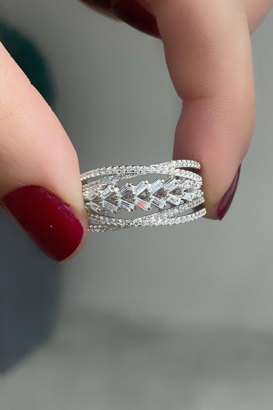 Vip İki Sıra Baget Dört Sıra Taşlı Gümüş Yüzük