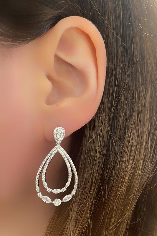 Vip Markiz Taş Detay İki Sıra Damla Gümüş Küpe