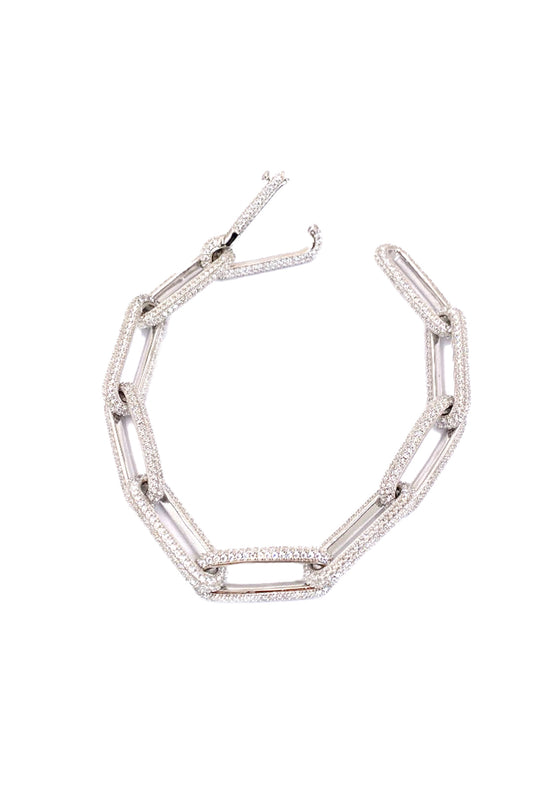Vip Kalın Taşlı Ve Taşsız Geo T Kilit Gümüş Bileklik