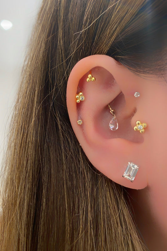 Vip Üç Baget Ve Üç Tektaş Gümüş Çivili Küpe