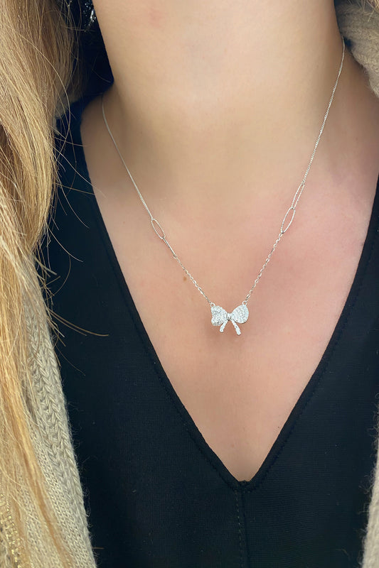 Yanları Geo Detay Full Taşlı Kurdele Gümüş Kolye
